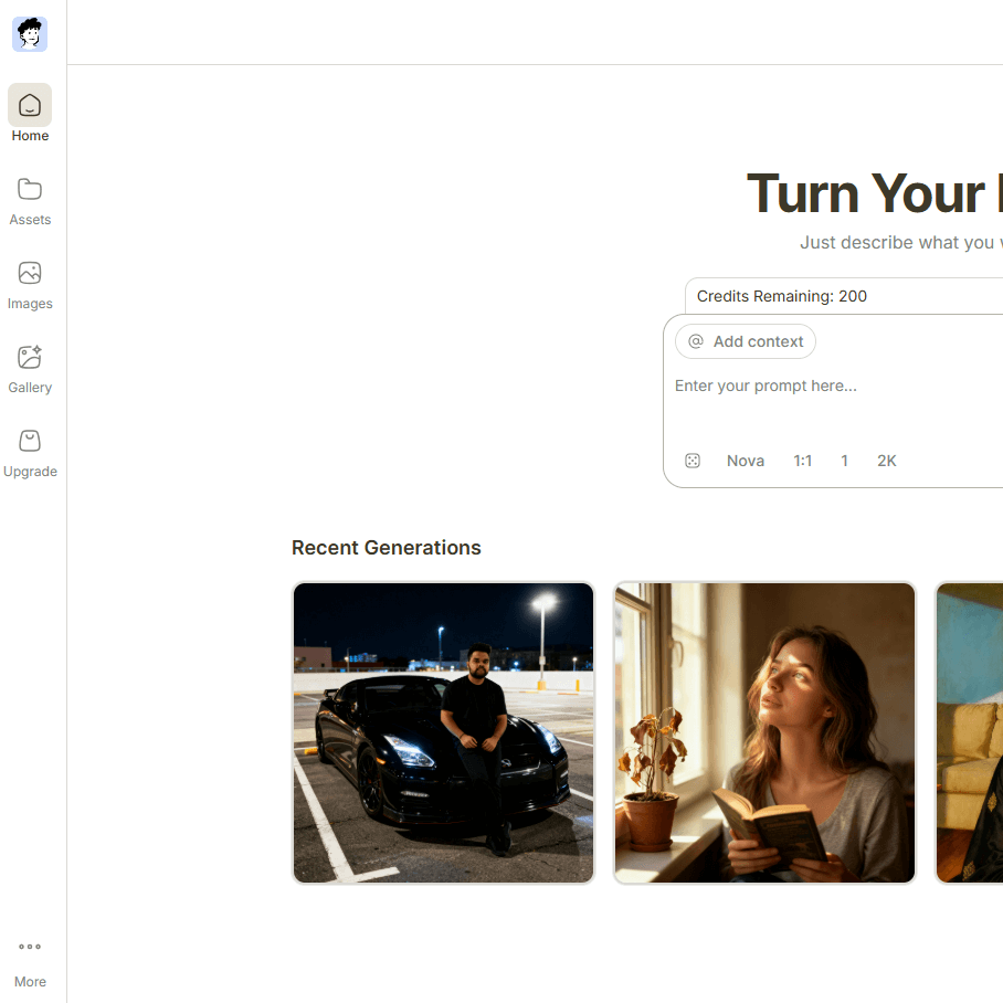 Instantly transform your photos into high-quality, lifelike images with power of AI. Whether you need fresh content for social media, professional shots for Linkedln, or a fun set of images for personal project.