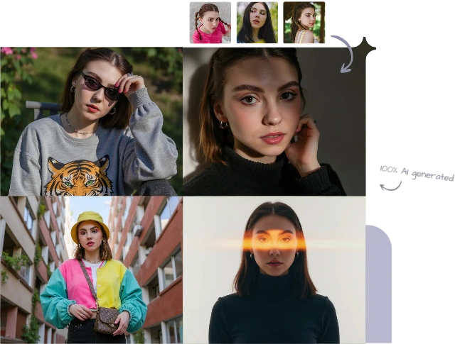 Tailor images to your personal or brand style. Create custom AI models to fine-tune poses, expressions, and backgrounds for your unique aesthetic.